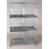 67 An impressive one-piece chrome plated cage wire mesh with multiple sections that keeps dogs elevated above pans. Six cubicles form an entire unit that will fold flat to store. Center dividers on all three levels are removable to create three larger crates. Features: -Six heavy-duty, galvanized steel pans. -Four and nine gauge wire. -Folds flat for storage. -Overall dimensions: 72'' H x 48'' W x 24'' D.
